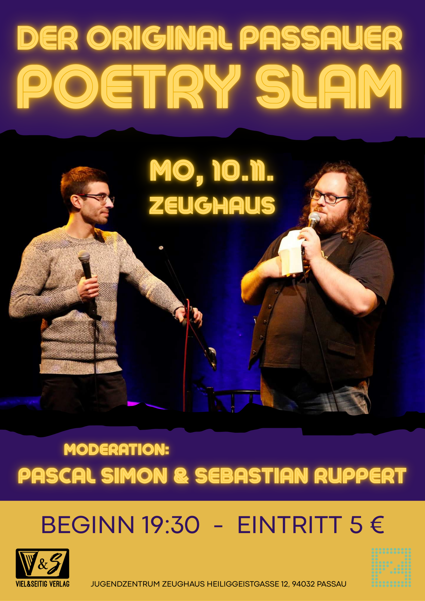 Der legendäre Wettstreit der Dichtkunst hält wieder Einzug im Zeughaus. Poetinnen und Poeten aus Passau und Umgebung treten mit ihren selbstgeschriebenen Texten gegeneinander an und ringen um die Gunst des Publikums. Seid dabei und stimmt mit eurem Applaus ab, wer am Ende gewinnen soll.