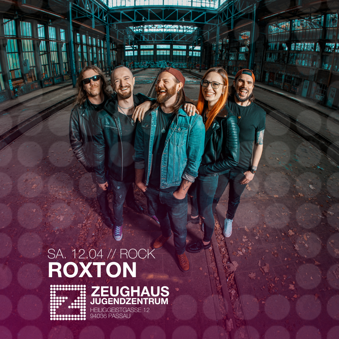 Seit 2022 begleitet ihn seine gleichnamige Band, bestehend aus Ihm (Lead Vocals / Rhythmus Gitarre), Gonzalo (Bass / Backing Vocals), Lizzy (Tambourine / Backing Vocals), Stef (Lead Gitarre / Backing Vocals) und Gereon (Drums / Backing Vocals) um seine Songs angemessen auf die Bühne zu bringen! Hier wird 100 % echte Musik präsentiert – ohne Auto-Tune, ohne Einspieler! ROXTONs Shows sind mehr als nur musikalische Darbietungen; es sind Energieausbrüche, handgefertigt und leidenschaftlich. Die Atmosphäre ist aufgeladen, die Begeisterung spürbar – ein Erlebnis, das Fans aller musikalischen Richtungen zusammenführt.